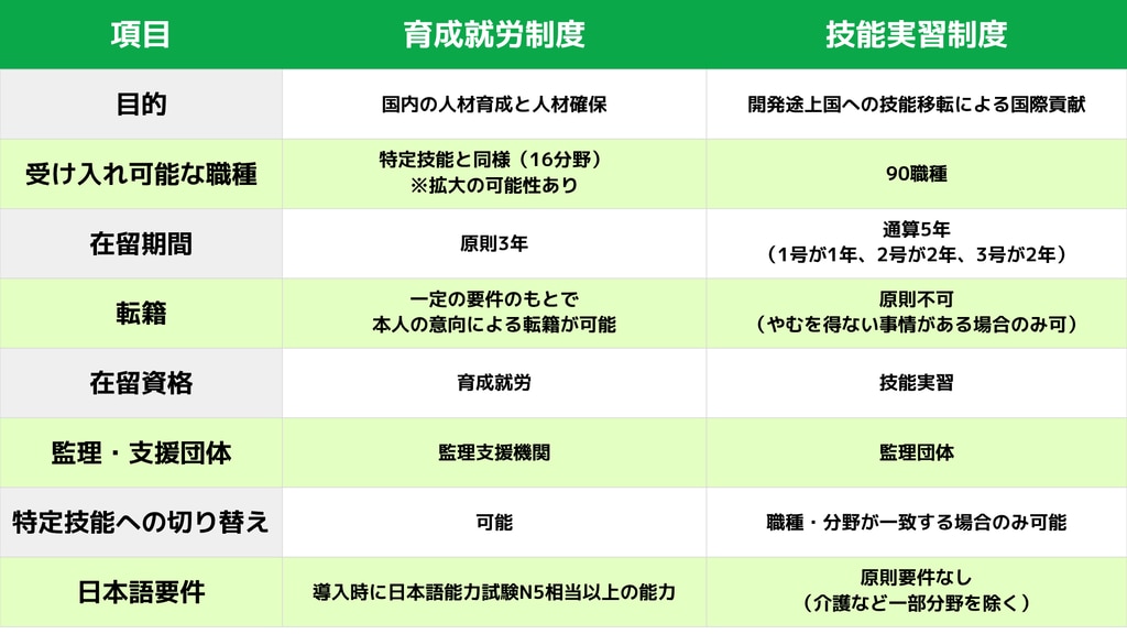 育成就労制度は、その先のキャリアパスである特定技能への接続を強く意識した制度設計であり、従来の技能実習制度とは、目的、労働者としての権利、そしてキャリアパスの点で大きく異なります。