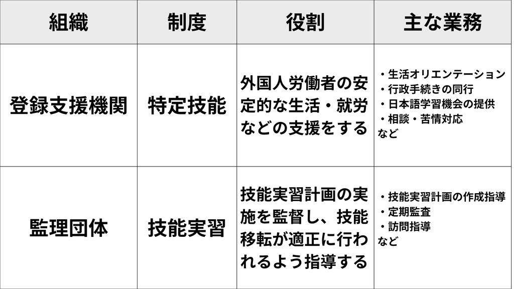 特定技能と技能実習を支える組織 登録支援機関と監理団体の違い