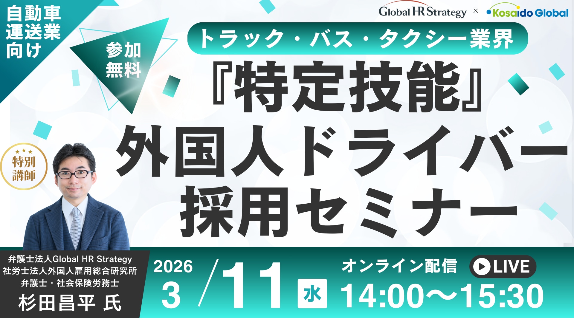 杉田昌平弁護士が、自動車運送業における特定技能制度の適用と実務上の留意点について解説。従事可能な業務範囲、受け入れ要件等、事業者に役立つ情報を提供します。