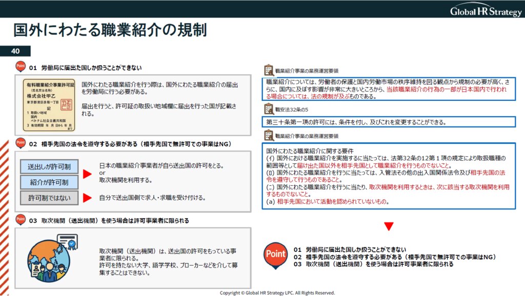 ここからは、「国外にわたる職業紹介」について、触れていきたいと思います。技人国でも特定技能でも適応される条文は同じです。