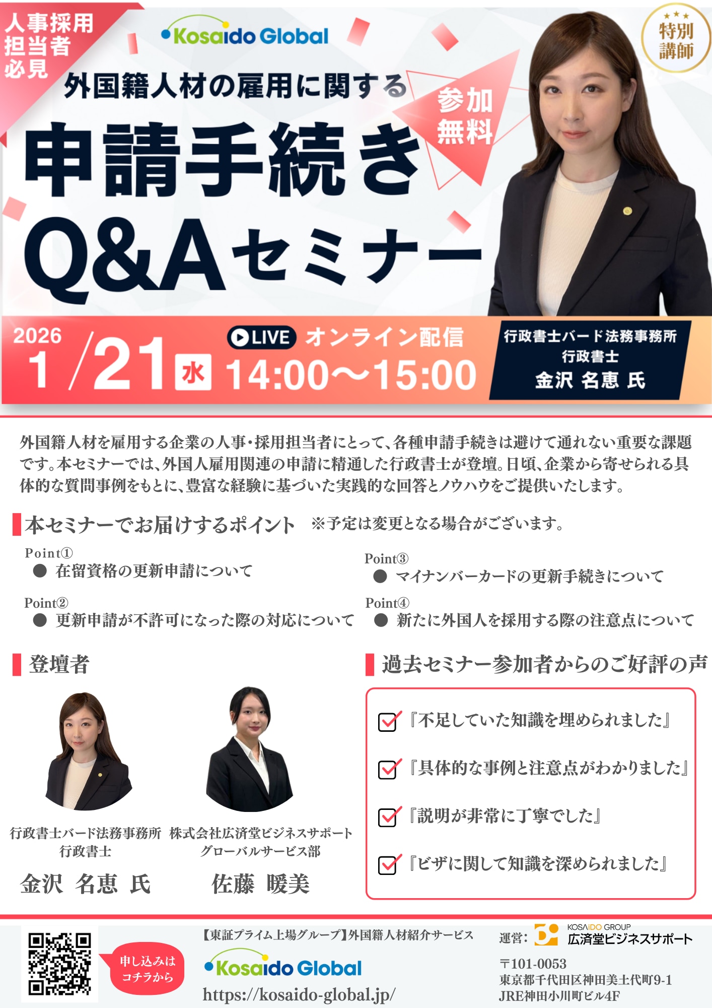 KosaidoGlobalでは、外国籍人材の雇用に関する申請手続き Q&Aセミナーを開催します。